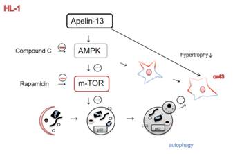 该实验首次发现Apelin-13可以通过激活AMPK/mTOR通路逆转AngII诱导的HL-1细胞Cx43下调和肥厚,进而对临床房颤的预防和治疗提供新的可能。未来将进一步探讨Apelin-13在在体和人体中的保护性机制。