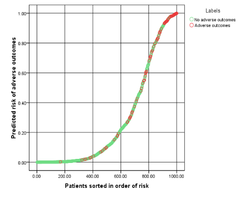 Figure1Categorization threshold of Prediction score(left)and predictiondistributions of adverse outcomes in patients withHF(right).