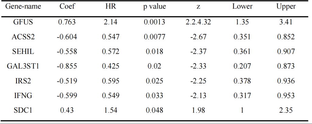 在本工作中,研究团队通过采用单因素(表1)和多因素(表2)Cox比例风险回归模型评估主要的临床和预后因素后发现:分期和风险因子是TNBC患者生存的显著预测因子。