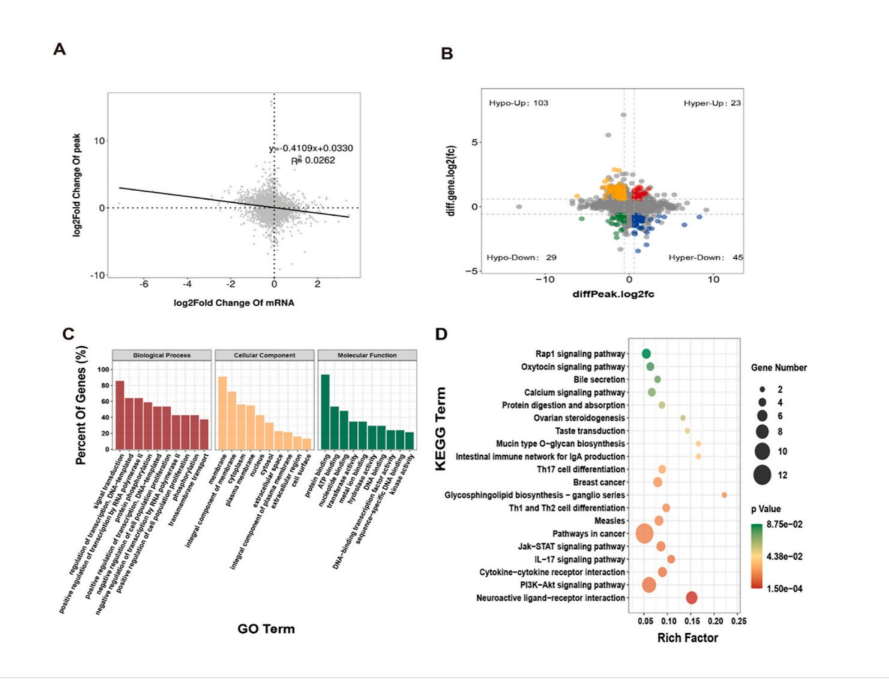 图 4.联合分析 CdCl2暴露组和对照组的 m 6A 甲基化和 mRNA 的表达