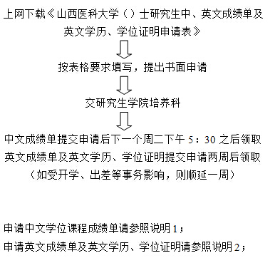 1、凡已毕业研究生申请中、英文成绩单及英文学历、学位证明,需提供研究生学位课程成绩单、毕业证、学位证等相应材料的原件及复印件,供毕业生出国使用。一般不为在校生办理英文成绩单。