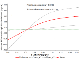 图2. 2-OHNAP与出生体重和CI指数之间的剂量反应关系