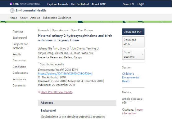 2018年12月20日,国产亚洲精品美女久久久_99久无码中文字幕一本久道_亚洲成AV人影院_亚洲AV影院一区二区三区 狠狠躁夜夜躁人人爽天天不卡_国产激情久久久久影院老熟女_精品性高朝久久久久久久公共卫生学院劳动卫生教研室聂继盛课题组在Environmental Health上发表了题为“Maternal urinary 2-hydroxynaphthalene and birth outcomes in Taiyuan, China”的研究成果。
