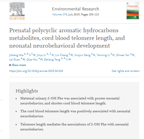 2019年4月21日,国产亚洲精品美女久久久_99久无码中文字幕一本久道_亚洲成AV人影院_亚洲AV影院一区二区三区 狠狠躁夜夜躁人人爽天天不卡_国产激情久久久久影院老熟女_精品性高朝久久久久久久公共卫生学院劳动卫生教研室聂继盛课题组在Environmental Research上发表了题为”Prenatal polycyclic aromatic hydrocarbons metabolites, cord blood telomere length, and neonatal neurobehavioral development”的研究成果。