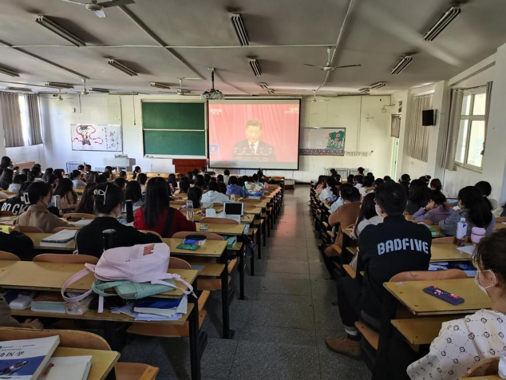 医学影像学院研究生房昌星在收看完报告后说:作为青年一代,我们紧紧跟随党的步伐,以赤诚之心,甘将热血沃中华,以渺小之躯肩负伟大使命,走向新时代的赶考路;管理学院研究生有这样新的感悟:我们要牢记习近平总书记的殷殷嘱托,永远听党话、跟党走,与祖国和时代同行,学习好自己的专业知识,投身社会,做未来社会的中坚力量。
